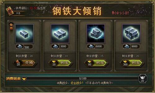 钢铁倾销、犒赏三军 活动一:钢铁倾销,福利大回馈!活动范围:6月5日(含)之前已开所有服活动时间:6月25日0点至24点活动内容:活动期间,玩家通过达到以下条件,即可获得大量镔铁以及金币奖励;已开启神兵玩家, ...