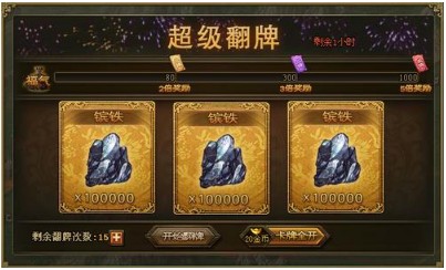 超级翻牌、长坂突围、百炼钢大酬宾、天降神剑、犒赏三军 活动一:超级翻牌,鸿运当头最高5倍送!粮食、镔铁、宝石、经验、免费借兵等多种翻牌奖励,轻松获得,极致满足。不断翻到“福气牌”,不停累积“福气值”, ...