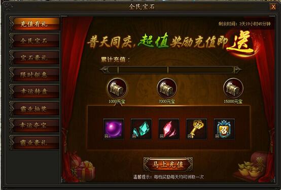 宝石竞技,豪礼相赠! 1. 充值有礼活动时间:2017年8月24日0点——8月27日23:59活动期间,充值元宝即可领取三档丰厚奖励,每天均可领取一次,不容错过! ...