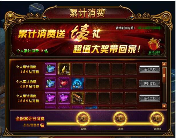 《大天使之剑》8月25日累计消费 活动时间:2017.8.25 00:00:00~2017.8.27 23:59:59活动范围:大师1级以上玩家 活动内容:1、活动期间个人只要每消费到一定额度即可领取一份丰厚奖励! 2、活动期间全服总消费每达到一 ...