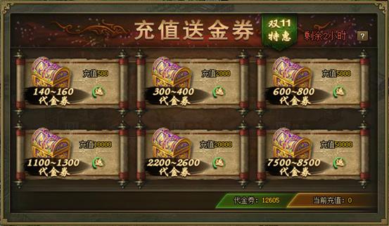 本帖最后由 方块的世界D 于 2017-11-10 22:13 编辑 《攻城掠地》11月11日 喜迎“双十一”,神秘活动超值优惠 活动二:喜迎双十一,充值送金券!多充多送,多买多得,史上最强优惠,双十一限时开启!活动范围:1 ...