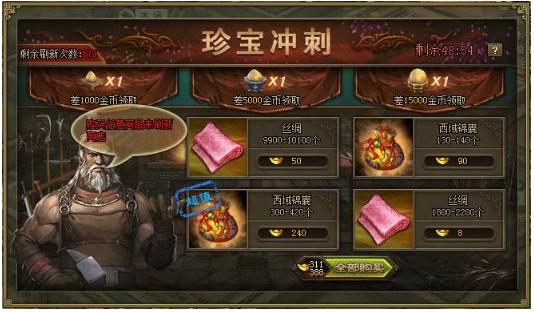 珍宝冲刺、钢铁倾销 活动一:珍宝冲刺,圆你十珍梦! 活动范围:11月7日(含)之前已开所有服 活动时间:11月27日0点至24点 活动内容:活动期间,在活动界面可以购买丝绸、锦囊、珍宝碎片等道具。购买金额达到一定 ...