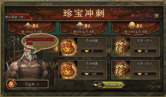 ● 活动公告活动一:珍宝冲刺,圆你十珍梦!活动范围:1月19日(含)之前已开所有服活动时间:2月8日0点至24点活动内容:活动期间,在活动界面可以购买丝绸、锦囊、珍宝碎片等道具。购买金 ...