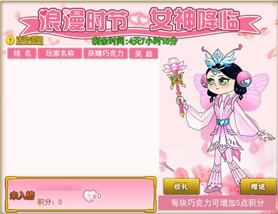 浪漫时节,女神降临 活动范围:3月3日(含)之前已开所有服活动时间:3月14日5:00至3月20日5:00活动内容:活动期间,抚摸好友宠物及赠送巧克力可使好友获得积分。积分排名前1000的玩家获得奖励,前10名玩家还可获得 ...