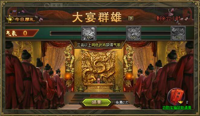 ● 活动公告活动一:【新】大宴群雄,宴请群雄赠豪礼!活动范围:3月14日(含)之前所有服活动时间:4月3日23:10至4月5日23:10参与要求:已开启功勋榜的玩家活动内容:活动期间,玩家通过送 ...