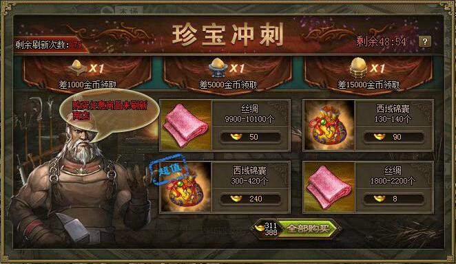 珍宝冲刺赏武将,洗练开光双重奏 活动一:珍宝冲刺,圆你十珍梦! 活动范围:3月31日(含)之前已开所有服 活动时间:4月20日0点至24点 活动内容:活动期间,在活动界面可以购买丝绸、锦囊、珍宝碎片等道具。购买金 ...