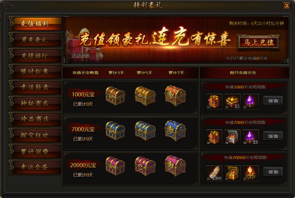 本帖最后由 方块的世界D 于 2018-7-12 22:51 编辑 《传奇霸业》7月13日精彩豪礼,海量材料送不停! 1. 充值有礼活动时间:2018年7月13日0点——7月19日23:59活动期间,充值满一定数量元宝,即可领取每日充值元宝 ...