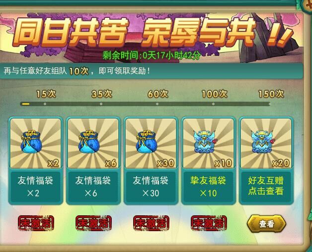 活动范围:8月5日(含)之前已开所有服活动时间:8月16日5:00至8月18日5:00活动内容:活动期间,与任意好友参与组队副本达到指定次数后,可获得奖励。 ※ 活动玩法1. 与任意好友参与组队副本达到指定次数,可获得福 ...