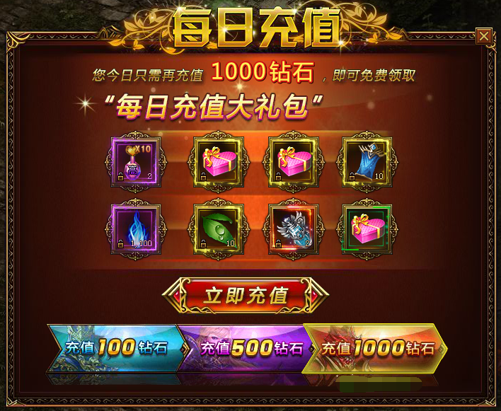每日充值活动时间:2018.9.25 00:00:00-2018.9.27 23:59:59活动范围:大师200级以上的玩家活动内容:活动期间,每日累计充值分别达到100钻、500钻、1000钻,均可领取丰厚奖励; 充值100钻石可获得:米达伦神格之心*1 ...