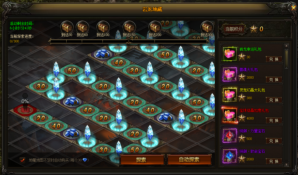 岩龙地藏 活动时间:2018.9.2600:00:00-23:59:59活动范围:大师200级以上的所有玩家 活动内容:1、活动期间,玩家可以通过每次花费30钻石进行探索获得积分,探索的过程中有几率获得珍贵的道具奖励或者大额积分,探索 ...