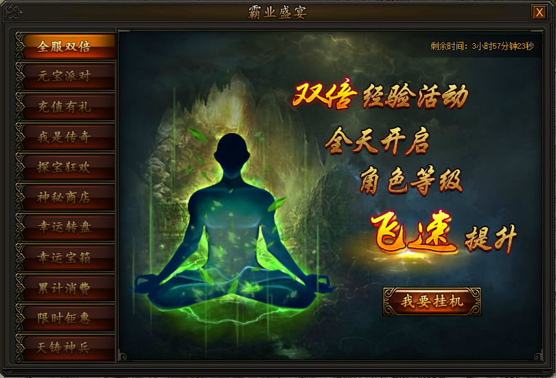 霸业盛宴,冲排行赢大礼! 1. 全服双倍活动时间:2018年9月28日0点——9月28日23:59活动期间内即可获得双倍经验效果加成,可与其他双倍经验叠加。 ...