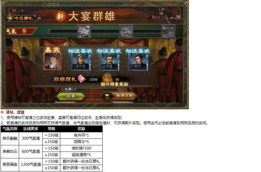 镇守襄阳宴群雄,对饮酒仙赠兵书 活动一:大宴群雄,宴请群雄赠豪礼!活动范围:11月8日(含)之前所有服 活动时间:11月18日23:10至11月20日23:10 参与要求:已开启功勋榜的玩家 活动内容:活动期间,玩家通过送发 ...