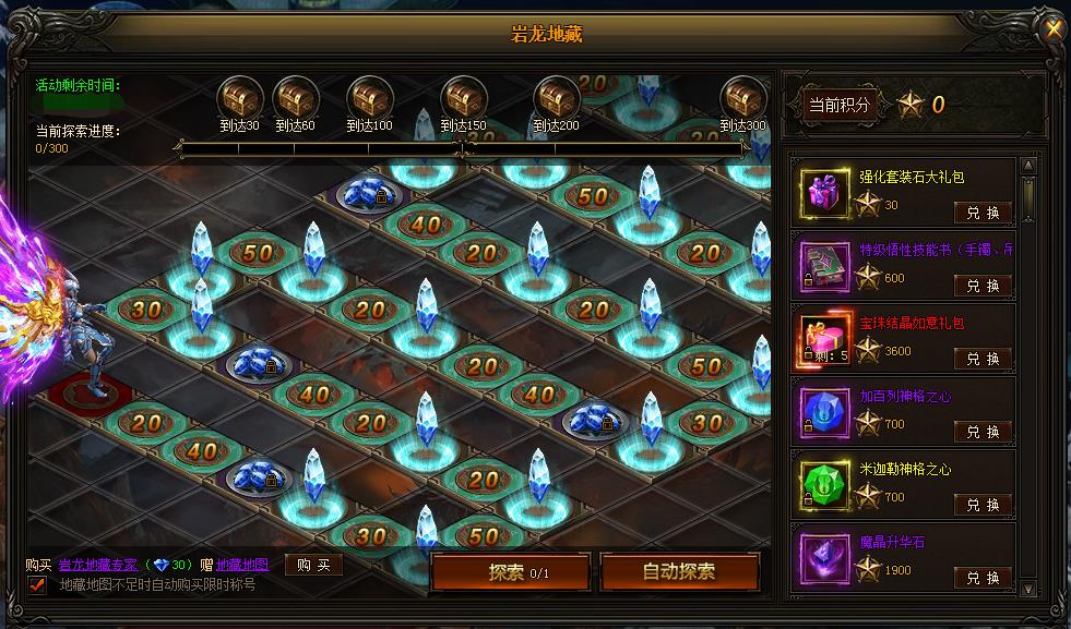 岩龙地藏 活动时间:2019.2.300:00:00-23:59:59活动范围:大师200级以上的所有玩家 活动内容:1、活动期间,玩家可以通过每次花费30钻石购买岩龙地藏专家称号获得地藏地图进行探索获得积分,探索的过程中有几率获得 ...
