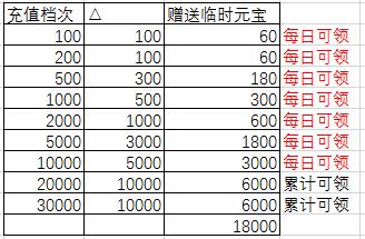 活动元宝时间: 6月6日~6月8日介绍:玩家每日充值或者累计充值达到指定额度可领取活动元宝。活动元宝价值等同于元宝,在消费时优先抵扣,活动期间内有效。数值: 图2 恭喜发财 ...