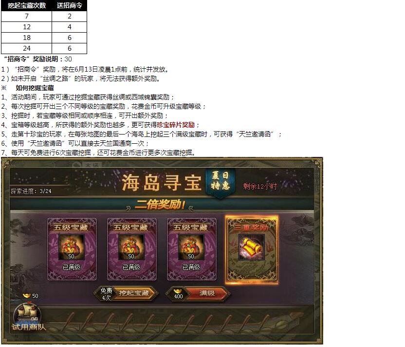 招商陨铁大赠送,撞钟祈福讨蛮族 活动一:充值砸元宝,招商陨铁大赠送!活动范围:6月2日(含)之前已开所有服活动时间:6月12日0点至24点参与要求:已开启世界地图的玩家活动内容:活动期间,通过充值可获得金元宝 ...