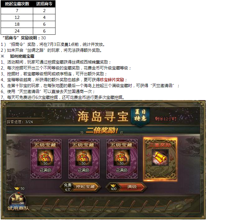 破阵顿悟奇门间、天降神剑寻海岛 活动一:海岛寻宝,珍宝福利享更多!活动范围:6月22日(含)之前已开所有服活动时间:7月2日0点至24点参与条件:已开启丝绸之路玩家活动内容:活动期间,玩家通过在各个海岛挖掘宝 ...