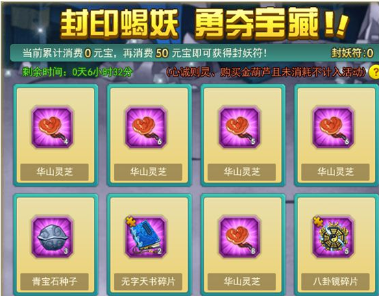 活动一 封妖夺宝活动范围:9月11日(含)之前已开所有服 活动时间:9月22日5:00至9月24日5:00 活动内容:活动期间,消耗元宝可获得封妖符,使用封妖符封印蝎妖可获得道具奖励。 ※ 活动玩法 1. 活动期间 ...