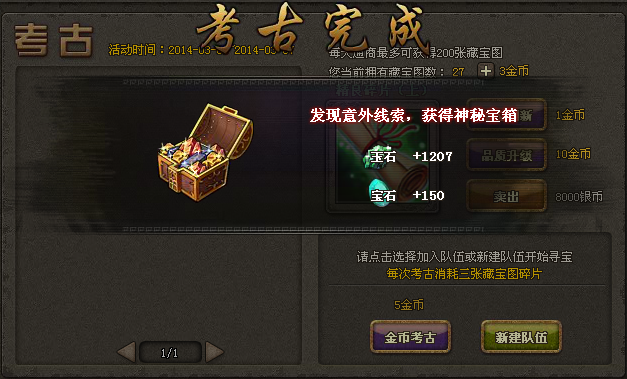活动时间:4月3日5:00--24:00活动规则:1) 通商可获得藏宝图,达成事件可额外获得藏宝图。2) 玩家通过组队集齐二个藏宝图碎片即可完成考古,相同等级碎片将得到 ...
