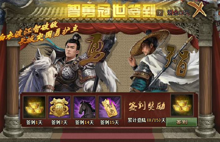 充值返金福利多,建功立业获豪礼 活动一:智勇冠世签到! 活动范围:11月21日(含)之前已开所有服 活动时间:12月1日0点至12月15日24点 参与条件:50级以上的玩家 活动内容:活动期间,累计登陆签到即可获得丰厚奖 ...