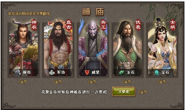 4月18日新祭祀活动 【活动时间】:4月18日凌晨5:00——4月19日凌晨5:00【活动内容】:l 通过祭祀可以获得银币、军功、威望、玉石、宝石,活动期间祭祀效果翻倍,暴击效果翻倍!l 祭祀到一定 ...