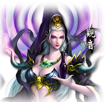 观音为5星紫色神将,最高可进化至7星红色神将!