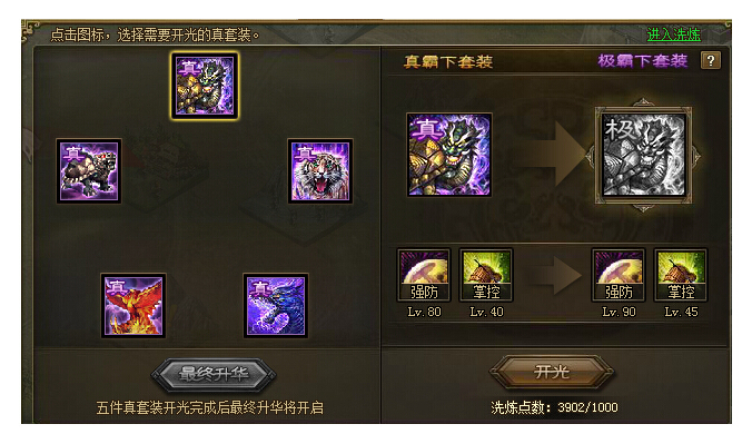 在迎来真套装的最终进化——极套装之后,伴随着名为“开光”的洗礼与涅槃重生之后,我们将变得愈发强大,但最终我们还是迎来了洗炼系统的完结。