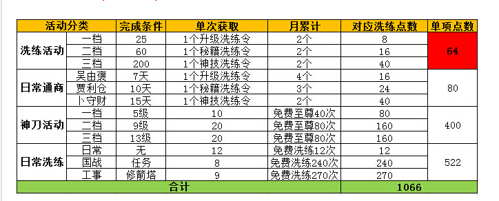 1、洗练活动频率为一月两次;神刀活动为一月四次,这下终于明白神刀频繁的原因了;