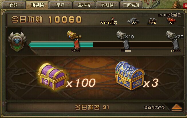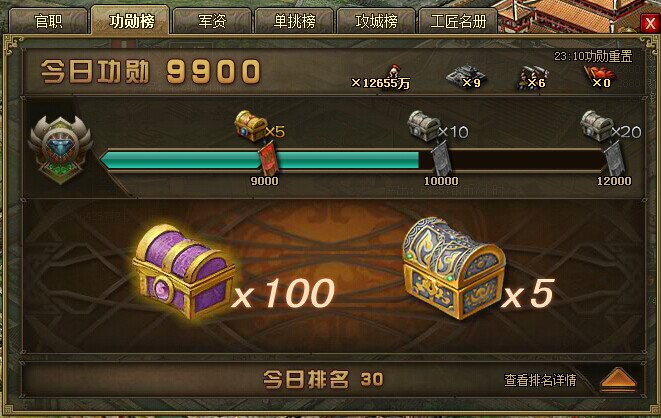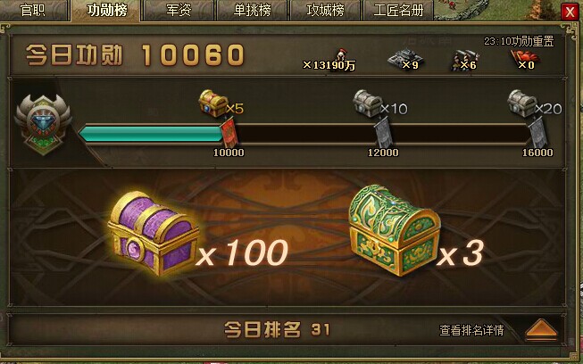 l   高级功勋榜共有3个奖励点,每达到一个奖励点可得到高级功勋宝箱和帅旗奖励;
