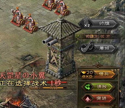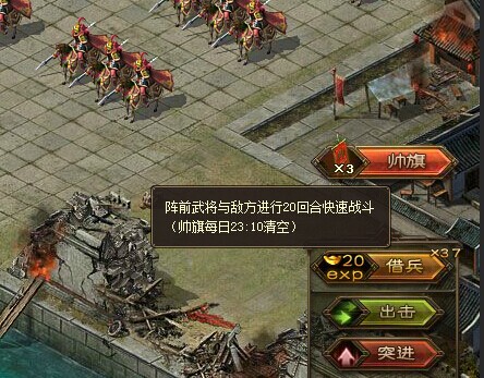 l   在攻城战斗中,玩家可以使用帅旗,使用后攻城战斗变为快速战斗,直到双方共20排部队阵亡;
