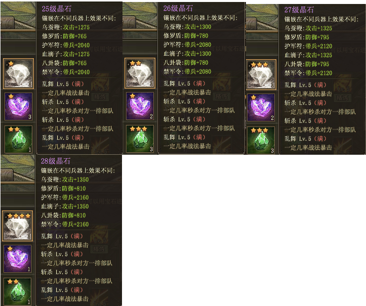 但是25-28级晶石颜色显得灰灰的,这是柏金的颜色么?没搞明白,但是总算与之前的宝石颜色有所区别