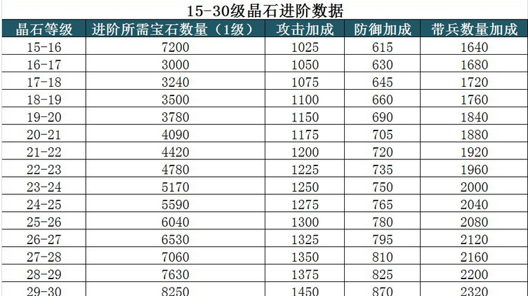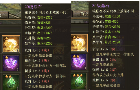 自从4月底新版出来以后,新的神将陆逊、周瑜,新的晶石30级开放,随着至尊比武,达到极致热点,目前已经有较多的大神拥有了最新的神将,也有部分大神拥有了全30的极致晶石,但是对于绝大多数玩家来说,新的晶石究竟有多大的性能,究竟需要多少宝石进阶,这依然是个迷,今天笔者就在一位大神的帮助下,有幸亲自经历了一次15级晶石到30级晶石的全过程,当然也记录下了全部数据,在此与大家分享,希望在大家了解的过程中对自己有所帮助。